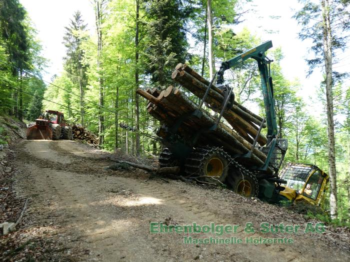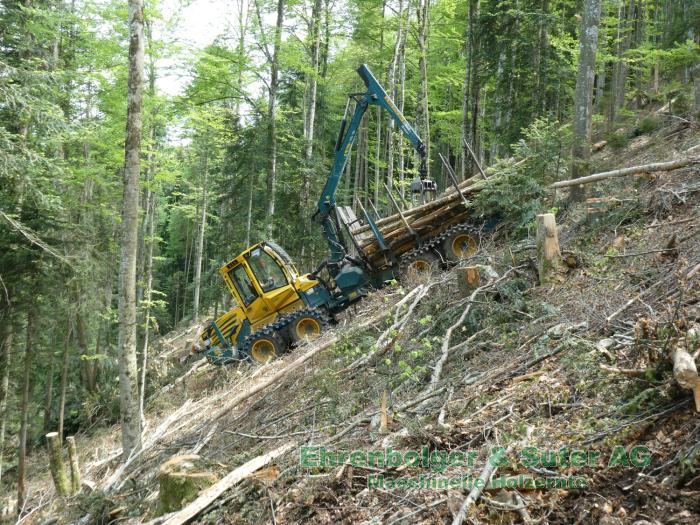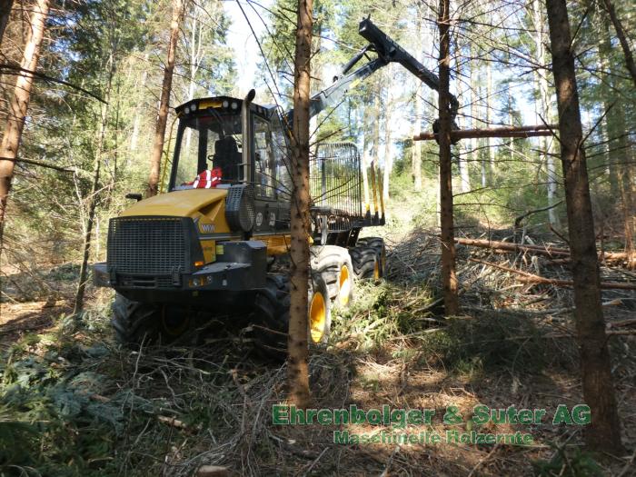 Unsere Forwarderflotte umfasst zurzeit 4 Maschinen. Wir setzen vor allem auf die Marke HSM sowie EcoLog. Dank der schmalen Bauweise der HSM Maschinen können wir diese mit breiten Reifen ausrüsten und kommen trotzdem gut mit den zum Teil engen Platzverhältnissen zurecht. Für spezielle Fälle können wir zudem am Kran der Forwarder einen 4 Fingergreifer oder ein Energieholzaggregat anbauen.