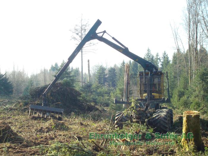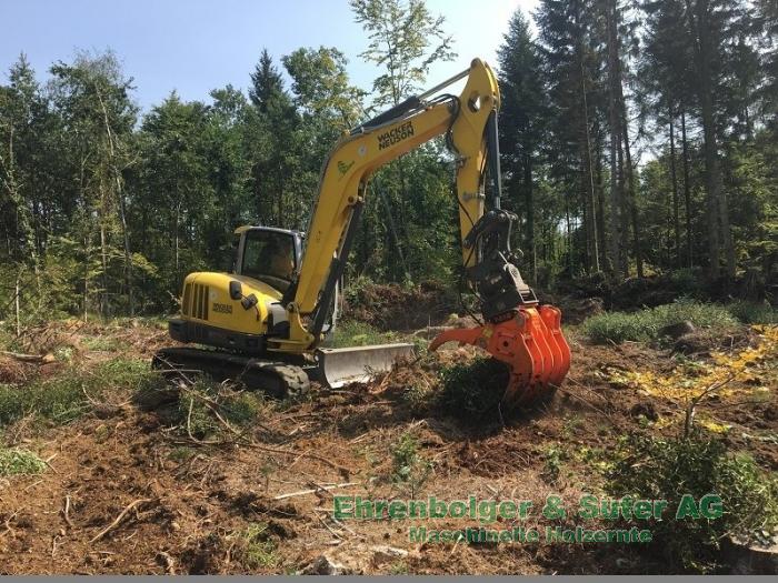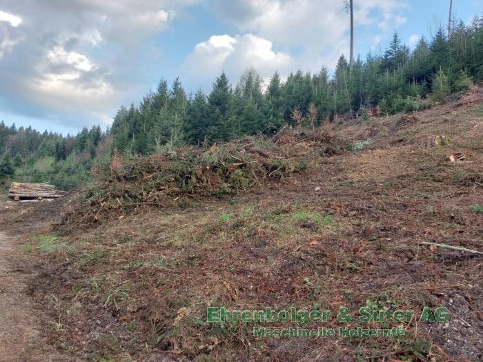 Bei grösseren Holzschlägen, Kalamitäts- oder Sturmschäden entstehen zum Teil Flächen welche mit Schlagabraum übersät sind. Zum Teil sind auch Flächen einfach mit Dornen und Sträuchern überwachsen. Um die Naturverjüngung zu fördern oder eine Pflanzfläche vorzubereiten räumen wir Ihnen diese maschinell. Mit dem 9 to Raupenbagger und dem passenden Roderechen ist die Fläche im nu geräumt.